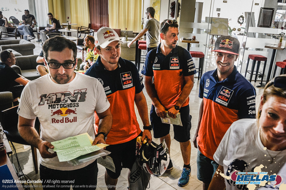 Nachdem alles im Fahrerlager aufgebaut ist geht es ab zur Papierabnahme. Dort treffen wir dann die ersten Profis, die die Hellas für ihr Dakartraining nutzen.